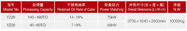 YZ/XZ28 螺旋低溫榨油機是一款專為油脂企業選擇常溫壓榨或低溫壓榨工藝的大型連續螺旋榨油機。適用于花生仁、棉 籽、菜籽、葵花籽、桐籽、蓖麻籽、米糠、玉米胚芽等各種高含油植物油料的壓榨制油。外形美觀,操作簡便,技術指標達到了現代制油設備的高端水平。