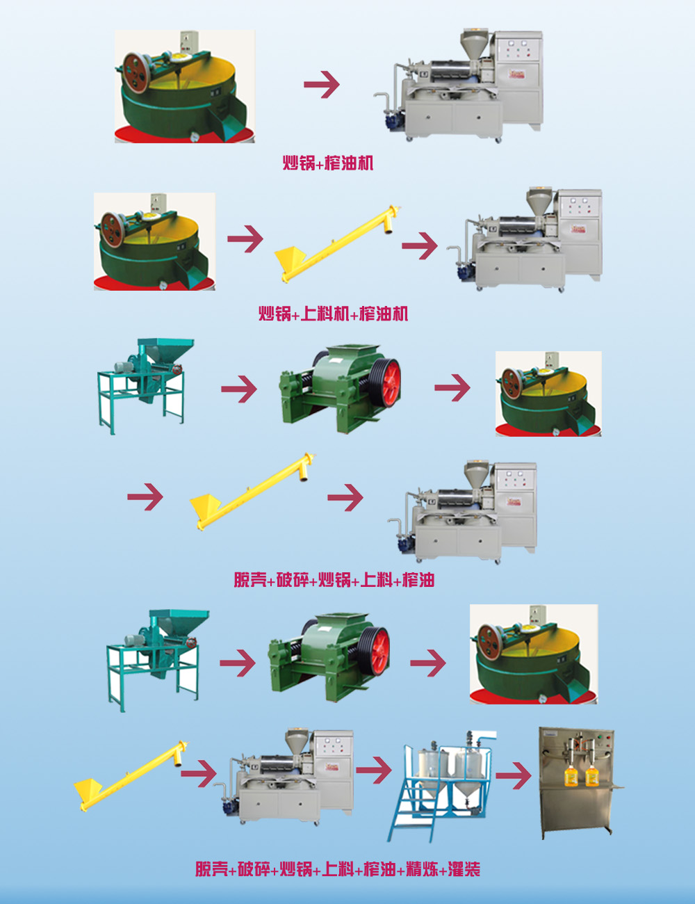 我廠生產(chǎn)的螺旋榨油機(jī)采用物理壓榨、適用于壓榨菜籽、大豆、花生、棉籽、葵花籽、桐籽等多種植物油料。具有投資少、配套簡單、易于維修、適應(yīng)性強(qiáng)、出油效率高等優(yōu)點(diǎn)。對于中、小油廠和鄉(xiāng)鎮(zhèn)個(gè)體企業(yè)都很適用。