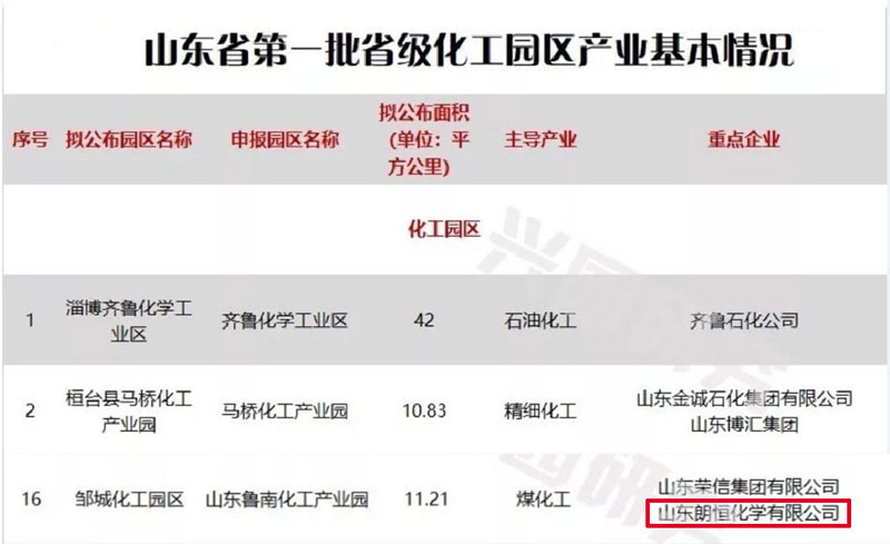 2018年5月16日山東省公布了首批通過認(rèn)定的33個(gè)園區(qū)以及57家重點(diǎn)化工企業(yè)。其中,山東習(xí)尚喜科技股份有限公司的全資子公司山東朗恒化學(xué)有限公司被列為山東省魯南化工產(chǎn)業(yè)園的重點(diǎn)企業(yè)。