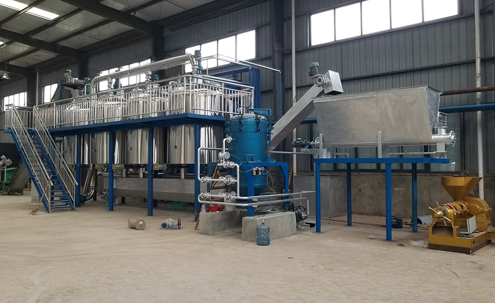 工藝流程:毛油→水化脫膠→水洗→干燥→干法脫膠→脫色→過濾→除氧→換熱→加熱→物理脫酸→延時脫色→加熱→脫臭→換熱→冷卻→成品油