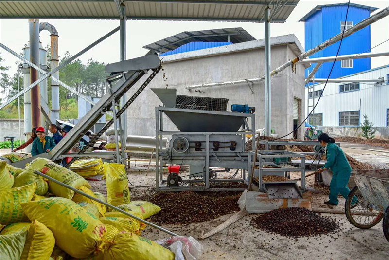 茶果剝殼機可將茶樹上采摘下的新鮮油茶果直接剝殼,無需事先爆曬油茶果,產量每小時產量每小時 800kg-1200kg 左右。經長時間的研制開發和實踐,剝出的油茶籽表皮光滑、無劃傷、內部無裂痕。本機具有剝殼、分離效率高、結構簡單合理,使用方便的特點。有電動動力及柴油動力兩種,可選用家用單相電和三相電兩種。適合全國各地的大中小茶油果種值戶選用。